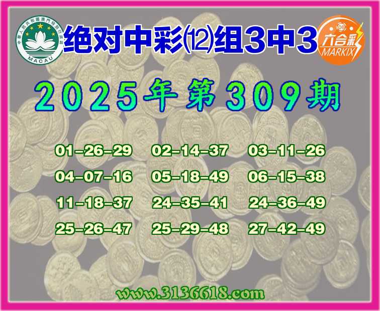 主题: 310期:绝对中彩【⑿组3中3】〓 关注中奖