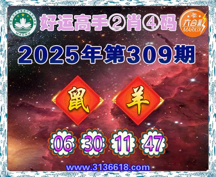 309期:【好运高手】 👉②肖④码👉【羊】【06.30.11.47】开:鼠06准上榜高手