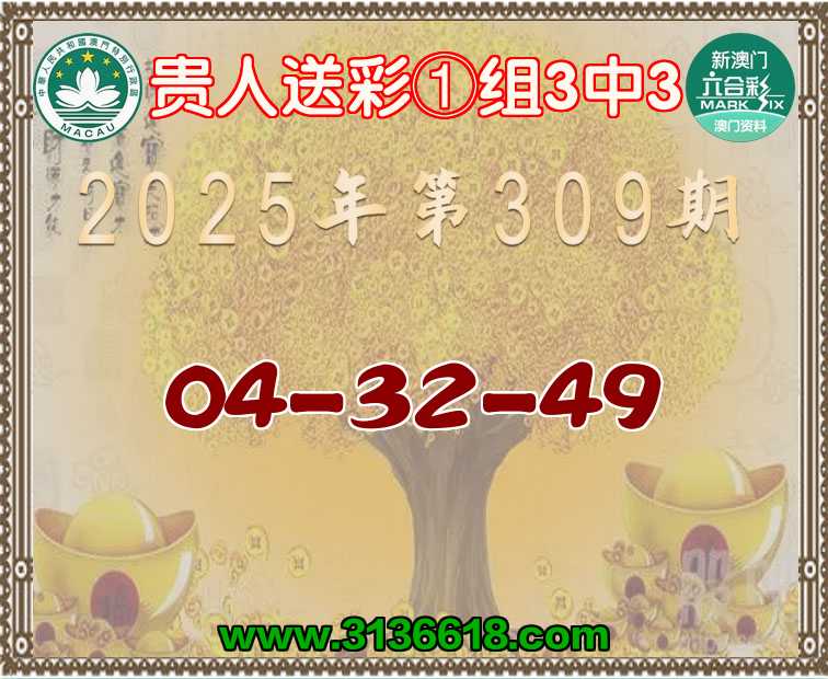 309期:《贵人送彩》 🧸①组3中3🧸【04-32-49